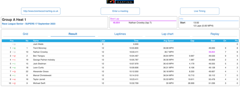 The results on the day see us starting P8 and was a rolling start again, this heat was restarted on a few occasions and just my luck in the fact that of all of the restarts the one that carried on was the one where I was at the back! To be honest I really don't think it would have mattered anyway as I was having real troubles with getting the kart to turn and It was just impossible in places which see me dropping further & further away from the pack and finishing P9 over 13 seconds off of P1 - appalling, just like the weather! Let's hope for better results next round.