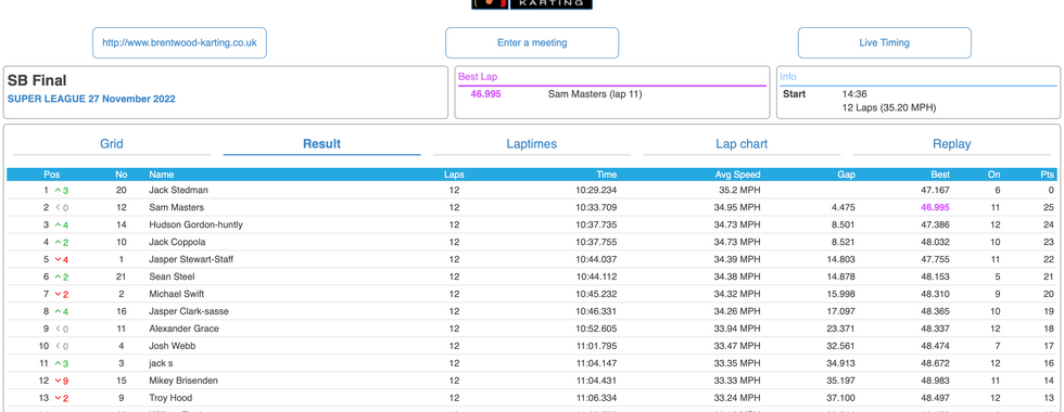 Contact from behind on the next lap then lost me the lead and with the Super League you don't just lose 1 place, you lose 3 or 4! The kart that I had was hard work to turn which didn't help and then for the 2nd time I was taken out of the race and dropped down the order and finished up P8 which I was disappointed with.