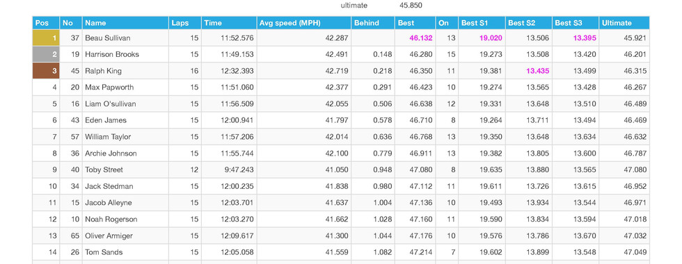 What happened going into Hairpin 1 was one of the scariest moments I have experienced to date in a Kart. I was hit from behind and someone made a ridiculous move that was never in a million years going to end well for someone (that someone was then me) where there was 4, possibly 5 wide going into the hairpin & my kart was launched into the air. I then landed on a kart that was below me before hitting the barrier and spinning back round onto track. Luckily the person I landed on was fine, but his kart was not and had to retire from the race. No penalties were given for this incident.